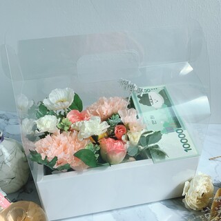 안녕하세요☺️ 다가오는 가정의 달을 맞이해서 어버이날 카네이션 용돈박스를 사전예약을 받고 있습니다 생화가 아닌 조화 카네이션으로 제작해드리니 미리 준비해 놓으셔도 문제없고, 사전예약을 통해 배송비 포함으로 좀 더 저렴하게 구매하실 수 있도록 조금 부지런하게(?) 상품을 준비해봤습니다💕 <상품구성 및 판매가> 1. 카네이션 캐리어형 용돈박스 [구성] 꽃 : 카네이션, 장미, 라넌큘러스, 양귀비 용돈봉투 나무목각픽 [판매금액] 27,900원(배송비포함/제주,산간지역 제외 ) 2. 카네이션 블랙/화이트 용돈박스 [구성